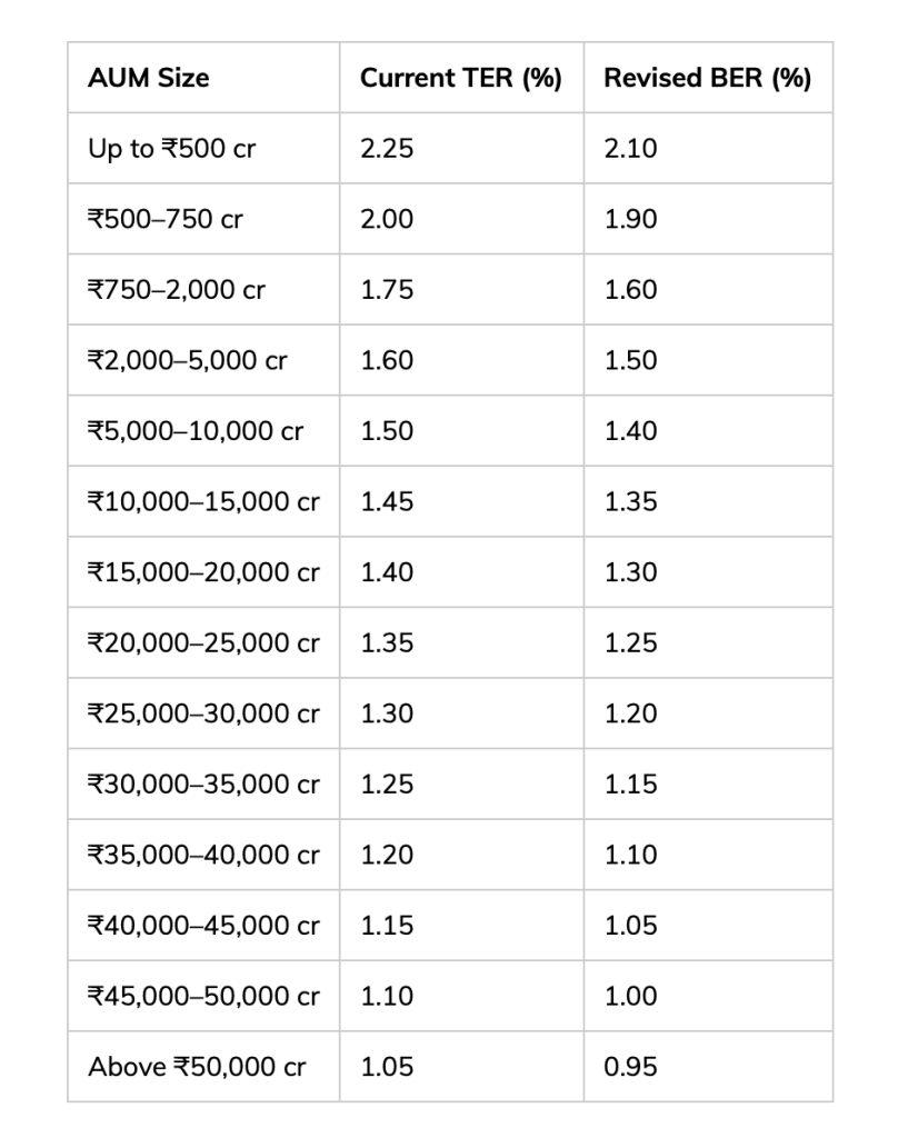 • Non-equity schemes now have BER limits ranging from 0.70% to 1.85%, depending on AUM size.